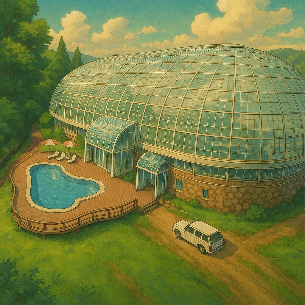 関元さんは2014年から市内でフィットネススタジオを運営。グラスハウスの魅力は、25ヘクタールの広大な公園「グリーンヒルズ津山」に隣接する自然豊かなロケーションと、ガラス張りのドーム型建築にあると語る。閉鎖されたプールを埋め立て、アリーナやトラックを整備し、フィットネス、ヨガ、子ども向けスポーツリズムトレーニング(リズム感を高めて運動能力を向上させる津山発祥の手法)を導入。カフェは非会員も利用可能で、パブリックスペースとして開放。資金調達では新スキームゆえ金融機関の理解が難航したが、PFI経験のある銀行に巡り合い、2021年12月着工、4ヶ月で完成した。